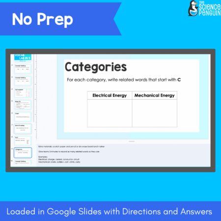 I’ve done the prep work for you. All you have to do is select the activities, project the slides, and let your students follow the prompts. The activities included are simple but tried and true methods to increase students’ retention of academic science vocabulary.
