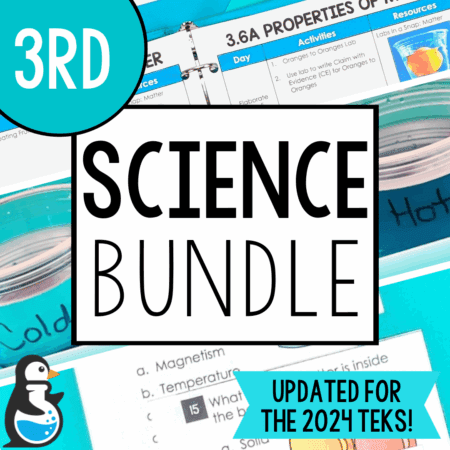 Not quite sure where to start when it comes to teaching the 3rd grade science TEKS? We’ve got you covered with this 95-page guide with day-by-day activity suggestions to accompany your Science Penguin resources. Lesson planning just got easier!