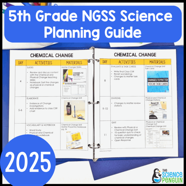 Because we offer so many materials and ideas for the 5th grade Science NGSS on The Science Penguin, we decided to help teachers by making a free planning guide for the year!